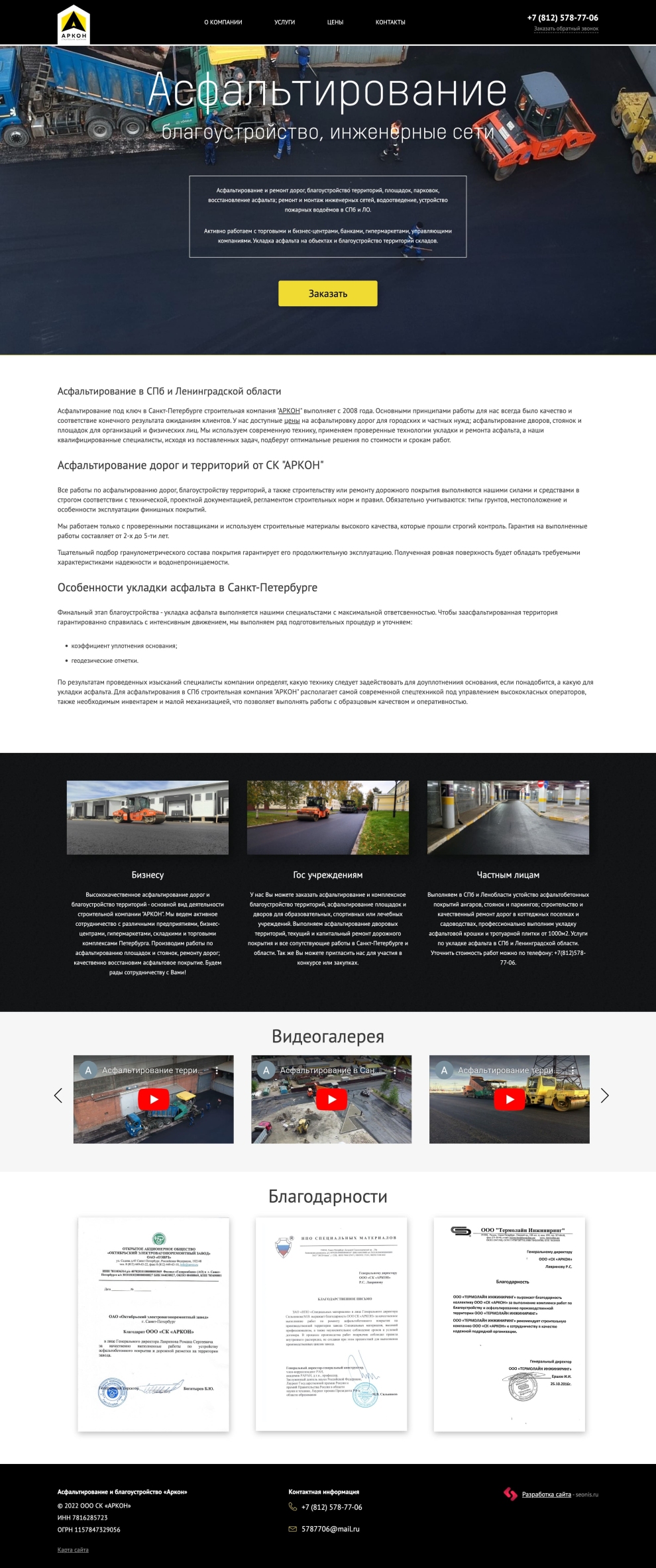 Корпоративный сайт для компании Аркон